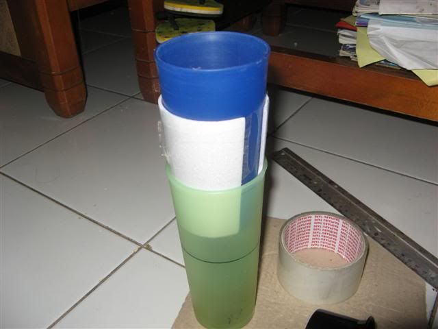 1. satu sisi polyfoam dilapis lakban, ini jadi sisi luar kalo diroll