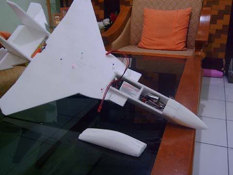 target awal 150gr total AUWoooo, tapi jadinya 170 gr dg batere Lipo 3S/450mAh, wah over weight nih., mungkin ini karena saya pake tusuk sate buat penguat, bukan carbon rod (biar mur-mer...)